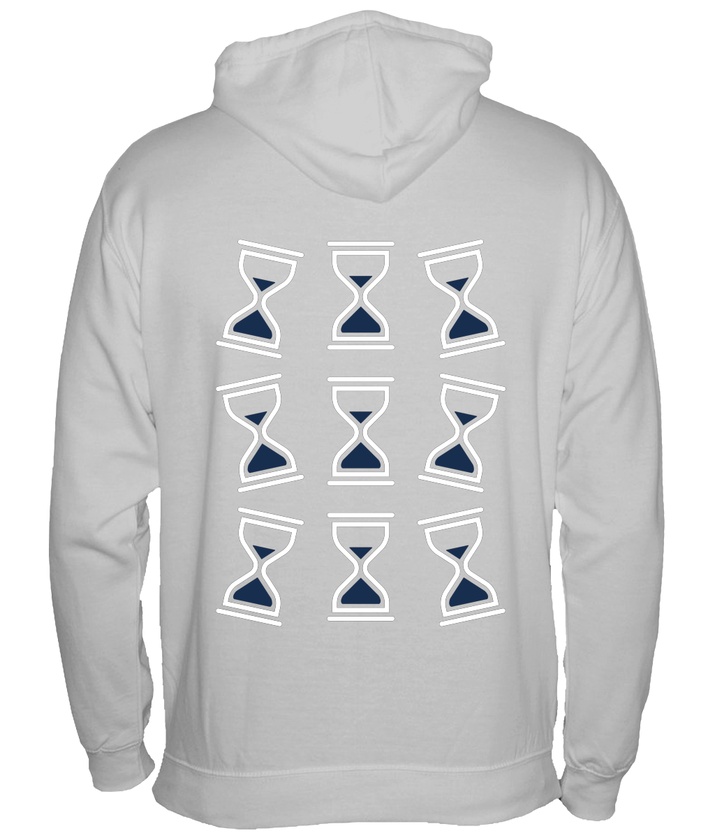 A soft and durable unisex hoodie made from a cotton-polyester blend. Features adjustable hood and front pocket, perfect for everyday wear. Time to tunnel design on front, hourglass design on reverse.