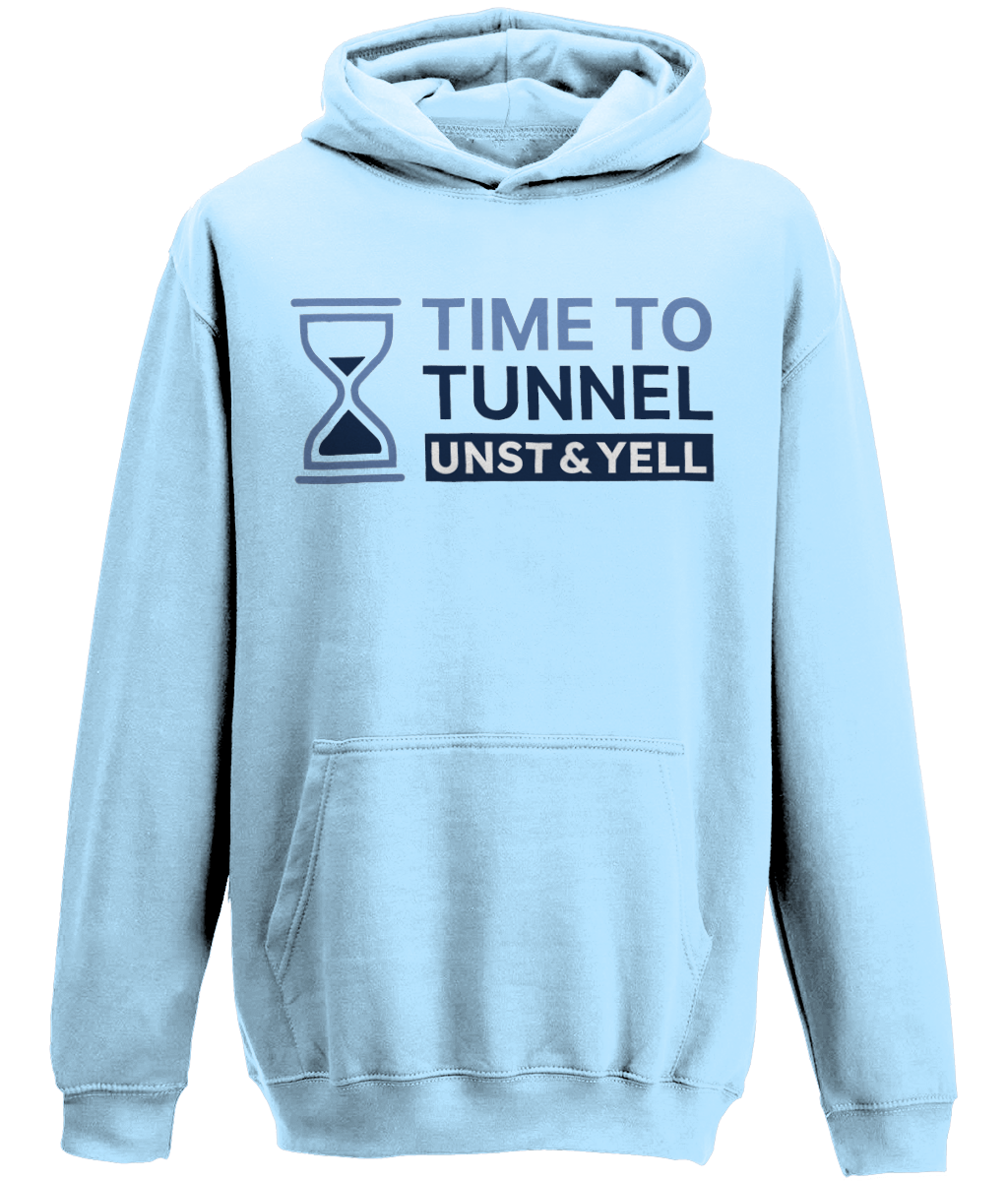 A soft and durable unisex hoodie made from a cotton-polyester blend. Features adjustable hood and front pocket, perfect for everyday wear. Unst and Yell Tunnels logo…