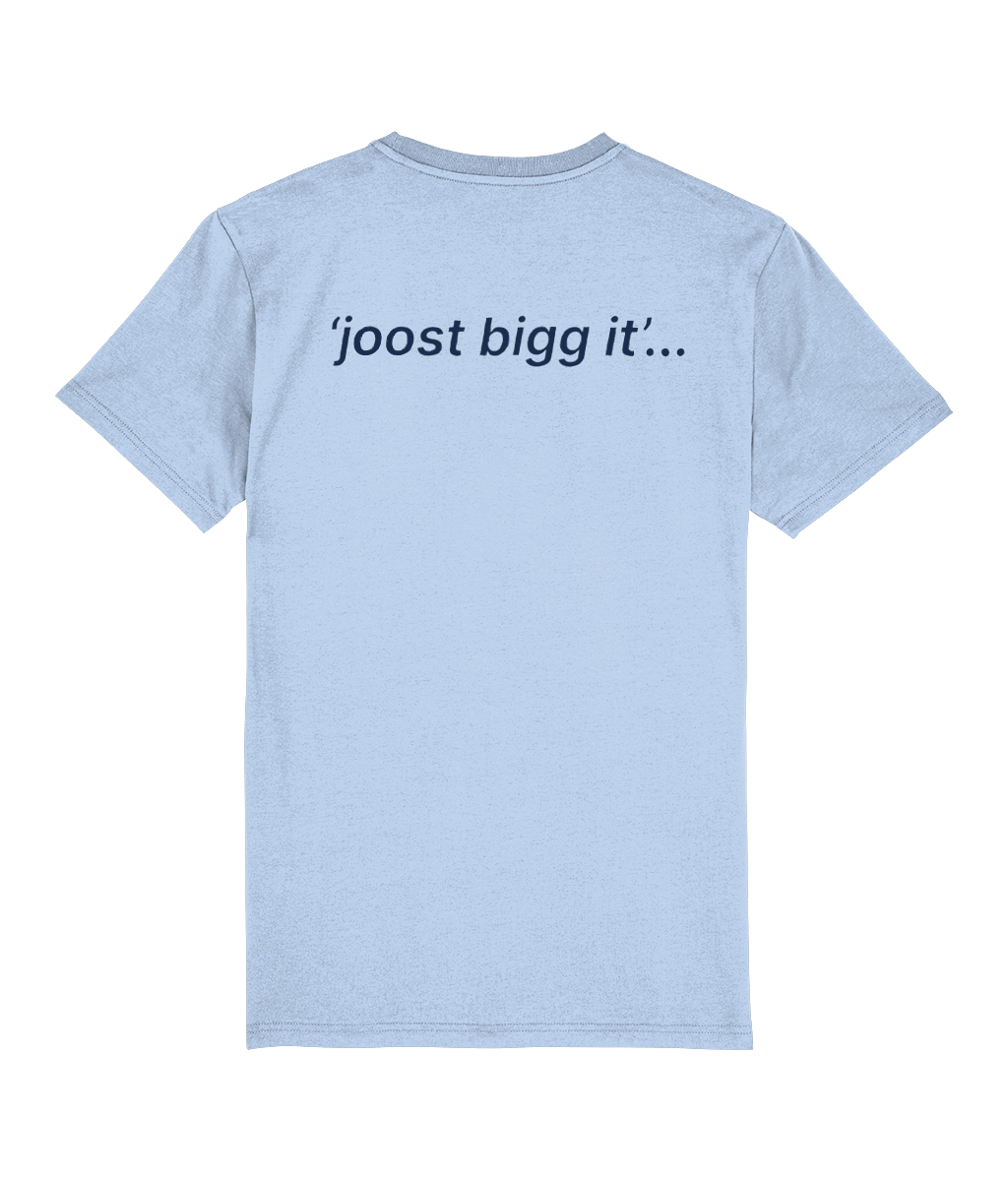 Unisex t-shirt, with two-sided design. Made from 100% organic combed ring-spun cotton. ‘Joost bigg it…’ design on reverse.