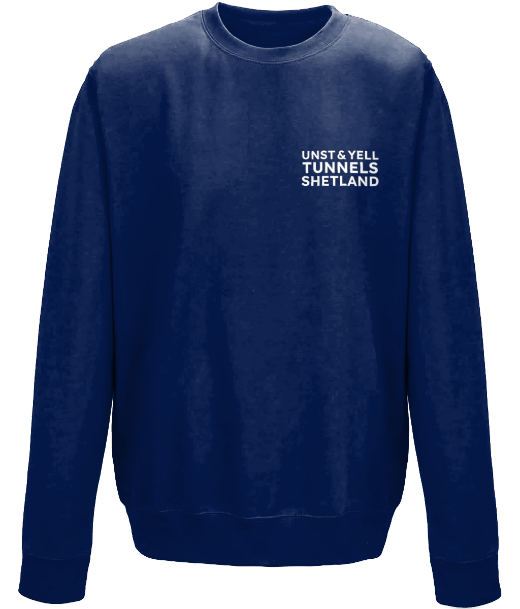 Classic unisex crew neck sweatshirt with a soft brushed inner. Made from a cotton-rich fabric. Unst and Yell Tunnels logo to front, time to tunnel hourglass design to reverse.